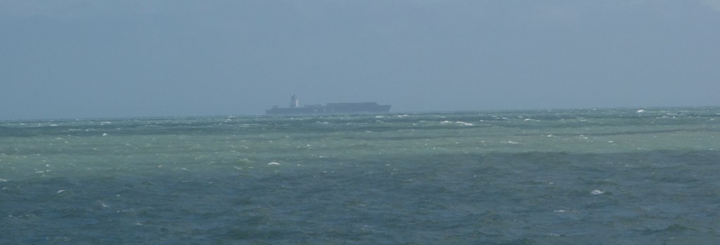 MSC Sao Paulo on its way from Bremenhaven to Le Havre. An earlier voyage this year included Liverpool, Montreal and Antwerp. It has a carrying capacity of 4688 TEU. It sails under the flag of Liberia and its home port is Monravia. Over 50 percent of the population of Liberia live below the poverty line.