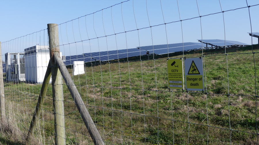 The public footpath is across this busy road. And then alongside solar panels, protected by CCTV and electric fences. What sort of society produces people who want to vandalise that societies sources of power?
