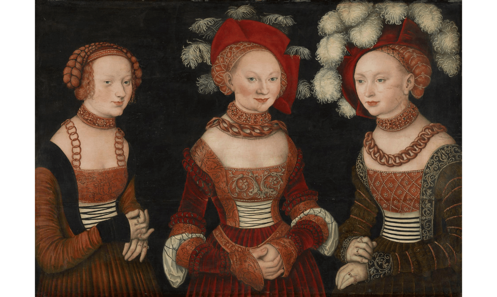 Compare Cranach the Elder’s painting of 1535 with Holbein’s ‘The Ambassadors’ of 1537 below.