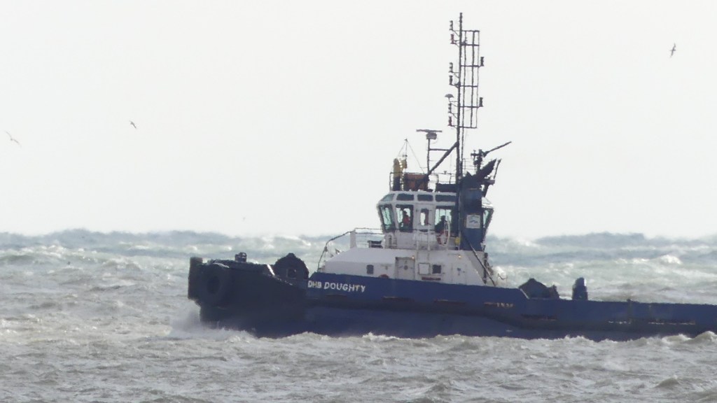 The tug ‘Doughty’ on its way to help a ferry into port.