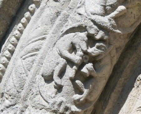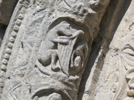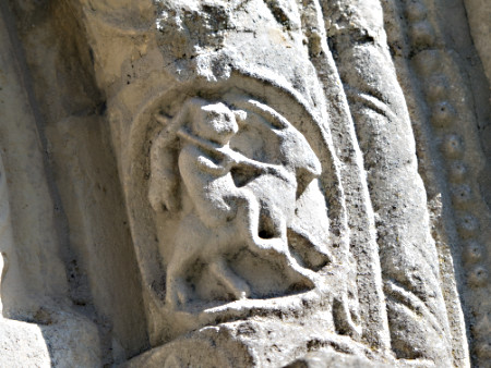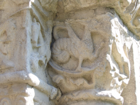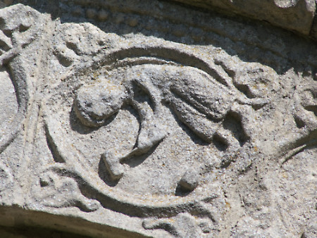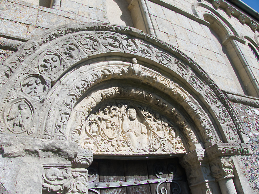 This was the real purpose of the walk, a visit to St Nicholas church. This is the south doorway. The stone carvings – and the iron work on the door – are 12th century. There are similar designs in a church in Beauvais, Picardy (which I can’t find on the web – a visit will be needed). The church of St Mary and St David at Kilpeck in Herefordshire is also Romanesque and is often compared to St Nicholas’s church.