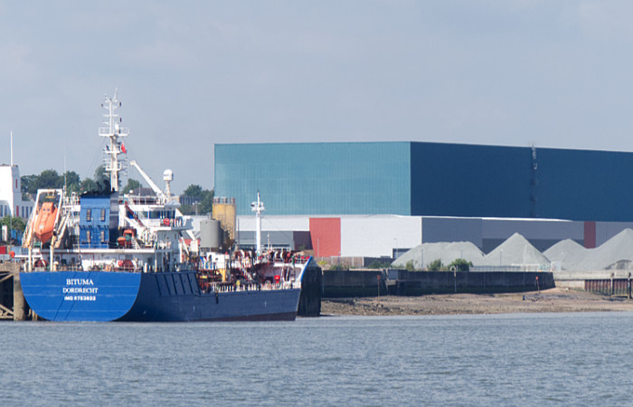 Bituma, oil/chemical tanker. The lower rise building behind the mounds of aggregates is Berkeley Modular which produces ‘volumetric modular housing solutions specifically for the Berkeley Group’. The Berkeley Group is one of the top ten volume house builders.