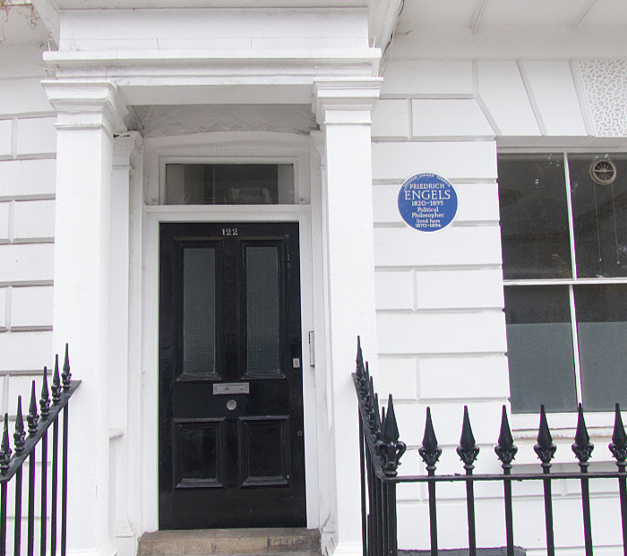 Friedrich Engels lived in 122 Regents Park Road from 1870 to 1895. Jenny Marx, the wife of Karl, had helped him house hunting. Jenny and Karl were frequent visitors, as were many members of the European revolutionary socialist movement.