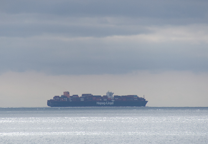 The container ship Hong Kong Express sailing from Antwerp to Southampton.