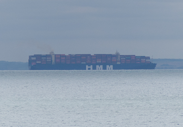 The HMM Goan sailing from Rotterdam Maasvlakte to the Suez Canal (and beyond). Maasvlakte is a large area of port infrastructure build on land reclaimed from the sea.