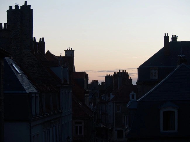 I walked around in the late evening with a mind like a blank sheet. Just there to soak up all the impressions. Not trying to make connections, not trying to fit any of this in to a pre-existing template. I wasn’t really thinking of anything at all. Well, actually I was. I was thinking where could I get a bottle of wine and something to eat. France closes early. Nothing was found in the old town so further afield was gently explored. Follow the bright lights, there might be a supermarket. And there I found an Aldi. Wine for three euros a bottle. It will be fine (and it was).