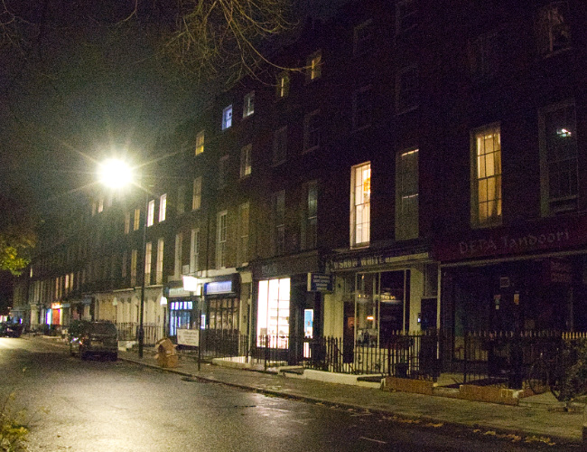 There was no plan. It was more about streets I wanted to be in; this street here, that one there. I wanted to be outside it all, not in the pubs with their sparkly glasses and warm tones of conversation, not even a casual observer at a table in the corner; no, it wasn’t the sense of shared space. It was deliberate to be alone, to be on the streets alone, to be part of those streets.