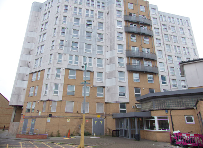 Homeless hostel, formerly ‘Focus E15’. There are 210 studios and rooms in the block. It is owned by Newham Council.
