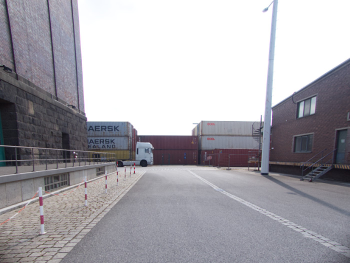 The S-Bahn from Savignyplatz takes me up to Westkreuz and I change to the U-Bahn to Westhafen. I spotted that the other day from the train. Containers, large storage tanks, warehouses, canal docks, a line of train wagons that look as if they might contain oil or chemicals. . All the industrial stuff that’s always worth a look. It’s not clear whether this space is publicly accessible or not. But there was nothing to stop the casual pedestrian from walking forward.