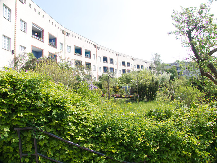 I keep coming back to the sensation that the Hufeisensiedlung is fantastic – but so too is the surrounding area. There is such a good balance between building and green space. I write in my notebook, in a rather contrived way perhaps, ‘a generosity of space will make for generous people; meanness in space will make for meanness in the people’. Well, it was just a thought that came to me.