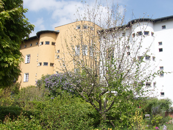But on the other side, away from the road, the facade is softer and much more humane. There are balconies and the colour tones are warmer. This side is looking out over a great deal of open space. And not just lawns. Gardens, trees, bushes, flowers, swing chairs, children’s slides, cultivation. This is well lived in space with a relatively high density of people. This is the difficult trick. How to add a lot of people to relatively small amounts of space. To keep a lot of people within touching distance to the city centre and to their places of work. This still hasn’t been satisfactorily resolved in a lot of places. But this is a very good attempt to answer the question within the obstacles and limitations imposed by the 1920s.
