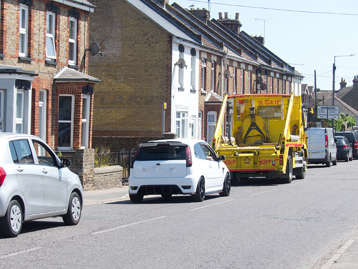 A small car with a noisy motor. It spits out a bang-bang-splat-bang noise which has become popular with some people. This car can probably be heard 600 – 700 metres away. The driver constantly races up behind the back of the skip lorry and then is forced to apply the brakes.