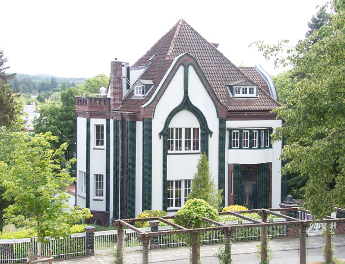 I went up to the top of the Wedding Tower in the lift and found myself to be the only person there. And stood for a long time looking out over towards Frankfurt and to Darmstadt and a hill that might become a mountain. And some good quality housing from the 1900s and some good quality housing from a later time. And there was Peter Behren’s house which looked so much grander than in pictures, and the architecture of Joseph Maria Olbrich and the church and the pool with the art nouveau pattern and the park.