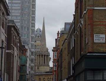 The implications of this are unclear but something else was noticed too; not just about changes in building design and size and function, but also in people’s story telling. Perhaps it’s faux nostalgia but the earlier phases of development, while smaller and less full of capital, seem to contain richer stories. It’s not about being anti-the new. The Post Office tower fits the earlier Fitzrovia in a way which is difficult to understand or explain. It works. This is almost as much to do with design principles as it is to do with aesthetics. It is possible to move in architecture, style and design from the latter part of the 18th century to the early decades of the 21st century and there are good examples of how that has been successfully done. But there is a great deal which is not a success and represents little more than a monoculture of capital and its visible building facades. Rather than being an addition (as the Post Office tower is) it too often feels like an imposition. When and how did capital become even more oppressive?