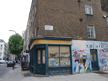 Preparing for the Fitzrovia Radical Walk involved a lot of walking the streets. Different routes, this street, that’s a dead end, this street is too disconnected from everything else. This street is too long and lacks interest. There is a crowd of people outside a pub. I ask the doorman if the pub is open on a Sunday. ‘Oh’, he says, ‘you can ask the governor’. He indicates a dapper man with big glasses with thick frames. He sort of nods. I introduce myself.