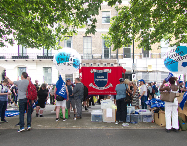 I take the underground train to Great Portland Street to experience the atmosphere from the beginning. The demonstration is pulling up its socks and lacing up its boots. A man with a black t-shirt with white lettering. ‘Become ungovernable’. An assumption, based on the jaunty angle of his pork pie hat, makes me think he already is. A group of people wearing t-shirts with the slogan, ‘Value Education: Value the Educators’. An Asian woman with long black hair holding a placard which demands ‘CUT WAR NOT WELFARE’.