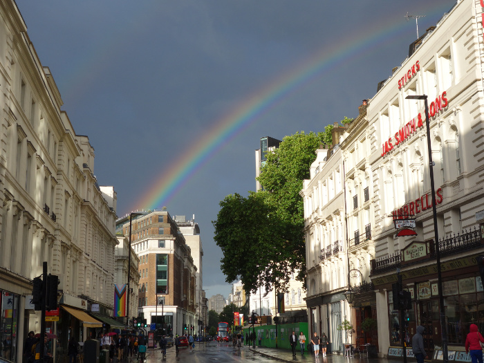 The cloud had burst and the rain had heavily fallen and now the streets were wet and the sun punched its way through some dark raggedy clouds. A rainbow over Holborn. Everything we need is all around us. We just need to work out how to claim it as ours; the planet, all the machines, the food, the land, the buildings. Everything we need for socialist luxury is already here. But how to walk through the invisible walls to make it collective and shared?