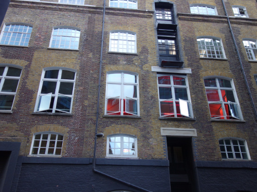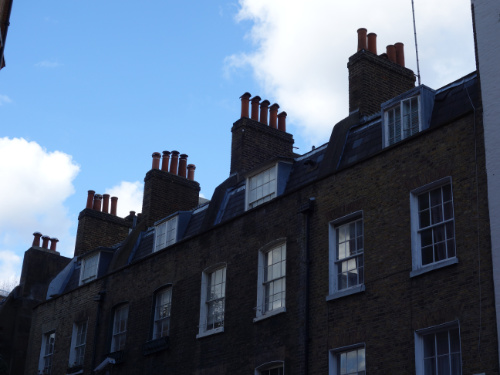 I wandered in and out of shops, mingling with the crowds on the streets, stopping to lean against a wall or stand still in a corner to watch the people and absorb the light and the way the sky changed from light grey to dark grey and how sometimes bright blue could be seen through the clouds. The past two hundred years or so could be traced through the buildings; early nineteenth century terraced yellow brick houses, a sprinkling of mid nineteenth century churches, expressing a mixture of terrifying moralising, strange interpretations of the life of Christ and confused versions of spiritual guidance. Buildings which were once workshops and sweatshops and factories and warehouses. Older shops with their bow windows, alleys and courtyards, neon signs, the backs of theatres. A man sitting on a box smoking a cigarette outside the stage door, his colleague in a small room with the door open reading the evening paper.
