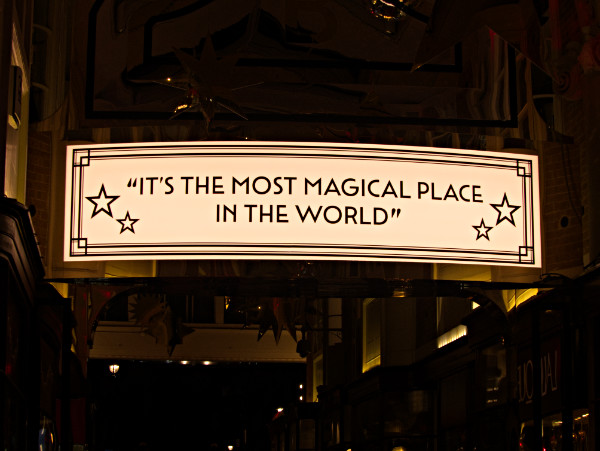 I wait for people to clear so I can take a photograph in Burlington Arcade. It is advertising Babylon and claiming to be a magical place. A young woman stops a few inches from me and stands next to me and starts taking photographs on her iPhone. She is so close that I say something just to melt that odd sensation of being too close to someone in a busy city space.