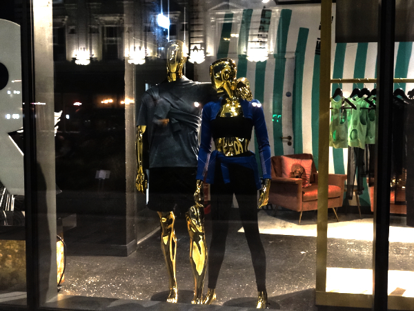 An image of an office with light and large green plants. I notice to the side of where I’m sitting there are rows of desks in a room without any windows. The woman in front of me is wearing black leather trousers and black boots with a pointed heel. The men are wearing what’s described as ‘business casual’, chinos, open next shirts, pointed shoes or subdued trainers. This is the global uniform of the technocrats. The architects, software developers, project managers.
