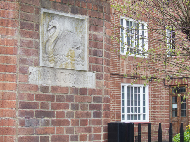 Flood Street seems familiar but I’m not sure why. Swan House is a large brick apartment block and I’m thinking that even though it’s eight stories high, it fits in with the general surroundings. An elderly woman uses a key fob to open the electronic gate. She’s looking at my intently.