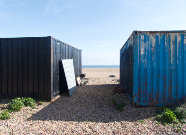 A group of lorry drivers using a slab of concrete beach defences as a table. It was covered with all sorts of bottles and packets of snacks.