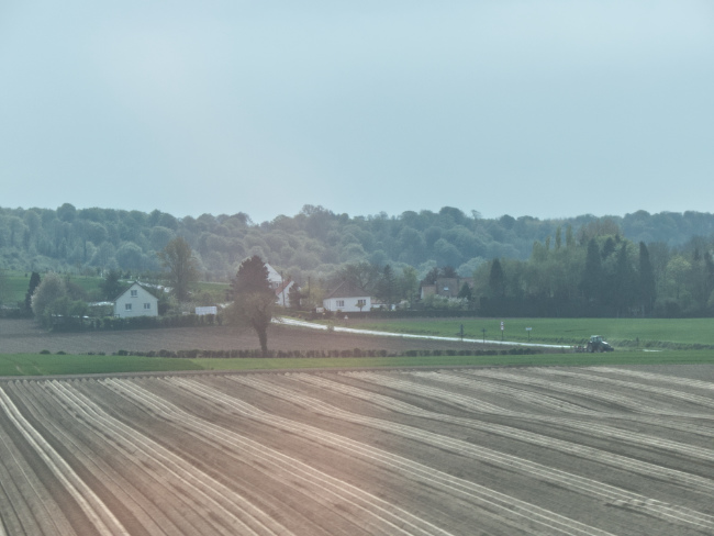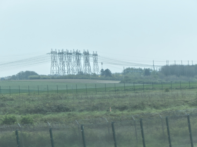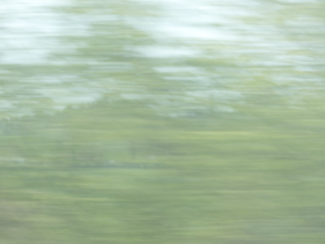 The train seems to be picking up speed as it moves towards Paris. Concrete bridges, overpasses and underpasses, viaducts and railway stations. The metal infrastructure of the electrical grid criss crosses the landscape. Wind turbines on the horizon, red brick houses with red pantile roofs. Villages half hidden by trees and long grass and hedgerows. It might be the middle ages, it might be the time of the Carolingian empire.