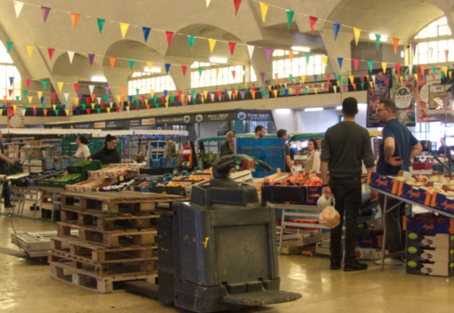 It’s clear a lot of people know each other here. A big round man shouts to a comrade behind a stall and stops to buy bunches of fresh asparagus. Hands are raised in waves and salutes from one end of the hall to another. More calls, people form in twos and threes to catch up with the local news.