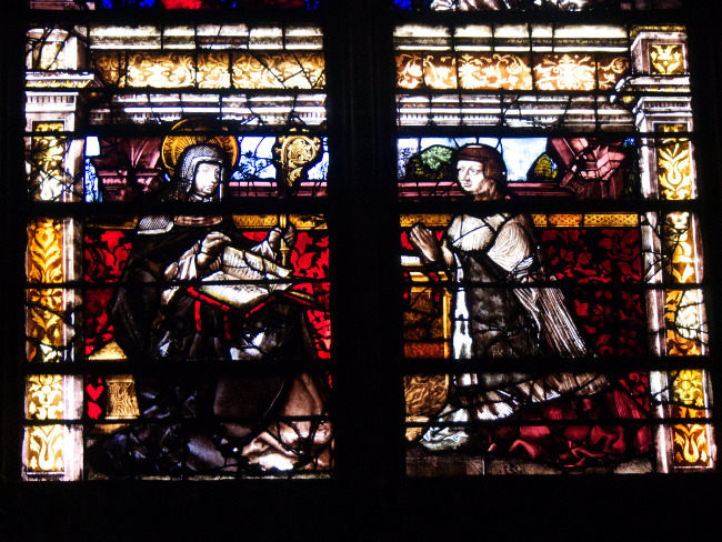 I slowly push the glass door to enter and almost gasp out loud at the powerful sensation of walking in to this space for the first time. There is a high ratio of glass to stone and this gives an overwhelming impression of glass and slender but powerful columns. As with many cathedrals it’s been bashed about through the centuries; wars, the Reformation, Counter-Reformation, the French Revolution, the First and Second World Wars, a couple of major fires, changing fashions and tastes (not just in architecture but also in liturgy and church activities) and the occasional collapse of sections of walls (faults perhaps of the extent of scientific knowledge and technical abilities).