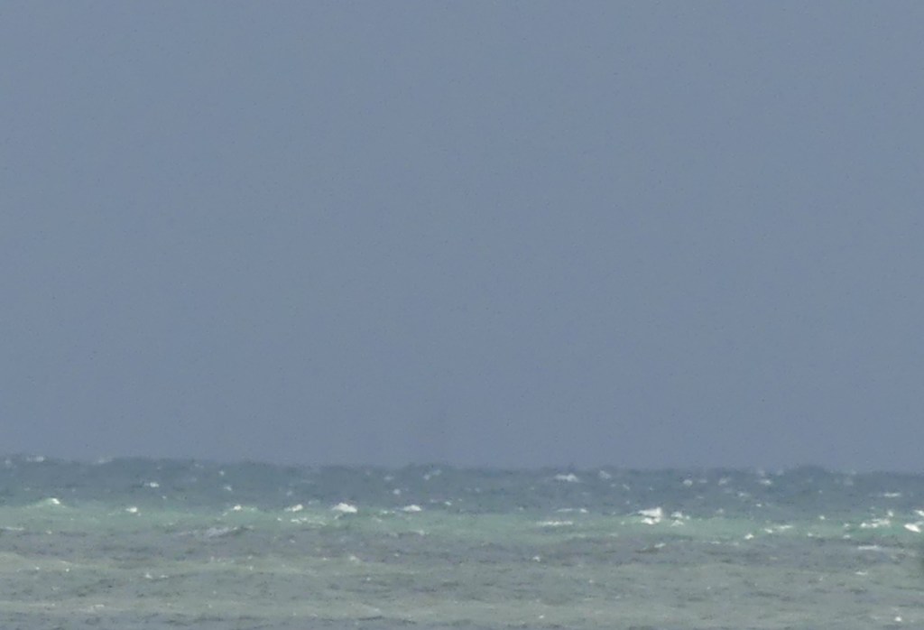 A nacreous sea along the south coast. A blue so light it can barely be discerned. It is more a wash of light. Where the horizon might be is a mist which both rises from the water and drops from the sky. There are no waves. The sea is so still and silent as if it is made of light blue mercury, a solid mass of polished quartz. The day feels as if there will be no night. That the sun is motionless in the sky. Planet earth will no longer be in orbit.