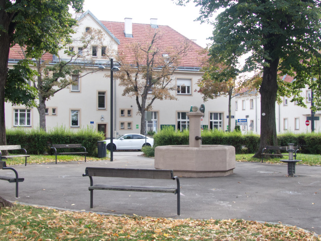Built between 1923 – 24, the architect was Karl Ehn who later designed the Karl Marx Hof (and later still worked for the fascists). It was expanded in 1928 – 29 with houses in Trabergasse and Neukommweg. The initial plan was for the development of a complete housing entity.