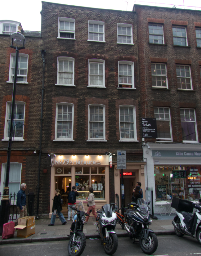 Dean Street had been developed between 1678 to 1697 by Nicholas Barbon and Robert Frith. Barbon was a mercantilist, property developer and economist. It is claimed he was one of the first exponents of the free market. In a nice symmetrical twist, he also appears on the first page of Capital when Marx begins the discussion on commodities,
