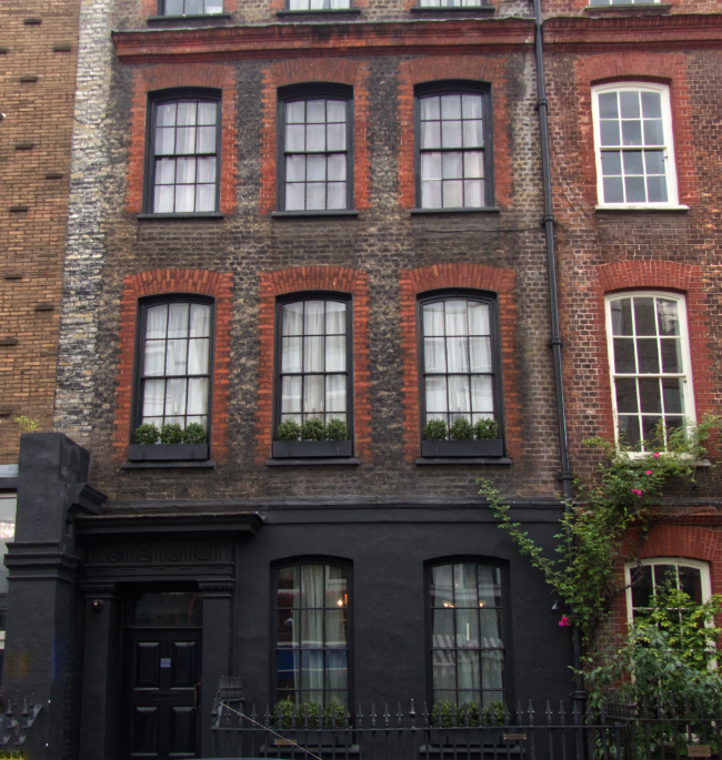 The early houses were constructed by individual builders and carpenters. There are excellent examples in Meard Street and Frith Street and one or two in Dean Street itself. For some reason the Soho area never achieved the hoity-toity snobbishness of Mayfair or the concentration of intellectuals in Bloomsbury. It sort of started, stuttered and then its pretensions gave way to the expansion of workshops, warehouses and factories of the industrial revolution.