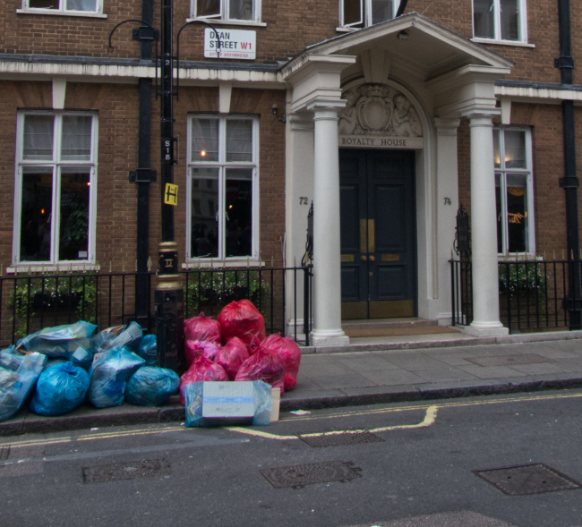 I started at number 1 Dean Street which is now a large three storey branch of the United Colours of Benetton. It is a good example of the triumph of marketing over workers’ rights. The clothes carry tags making claims of ethical credentials but there is nothing about the exploitation of labour. A cursory glance at the labels show clothing produced in China, India, Myanmar, Bangladesh, Brazil, Tunisia, Turkey and Egypt. A collection of countries with human rights violations, active union suppression and poor working conditions.