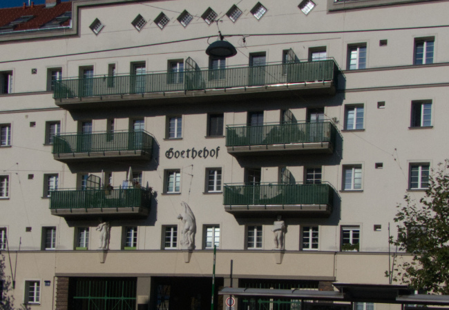 Goethehof was built between 1928 – 1930 by the municipal council of Vienna, then under the control of the Social Democratic Workers’ Party of Austria (Sozialdemokratische Arbeiterpartei Österreichs, SDAPÖ). This was a party with serious Marxist intellectuals among its leadership and a mass working class base, particularly in the capital city.