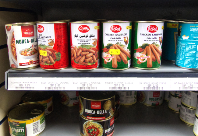 And in this case, I will be able to exchange the fiver in my pocket for the biscuits (which are £1.99) or anything else in the shop, up to the ‘value’ of five pounds. I can add another packet of biscuits and a jar of hotdog sausages (made in Denmark with Arabic writing), or two packets of noodles (made in South Korea), or three bottles of beer made in Turkey. Or many different combinations.