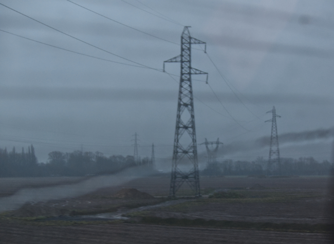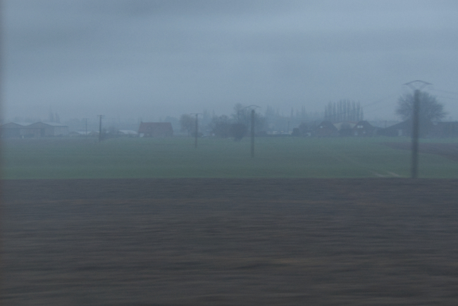 I change trains at Brussels and sit in the commuter train to Antwerp, gazing out of the window at the towns and villages along the way and the sodden muddy fields.