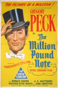 In the film The Million Pound Note Gregory Peck plays the character of the American sailor Henry Adams. He has been blown off course in his schooner, picked up in the Atlantic and ends up in London penniless. Two eccentric brothers, Oliver and Roderick Montpelier see him in the street (he is trying to pick up an apple from the pavement as he’s hungry) and invite him in to their grand Mayfair house.