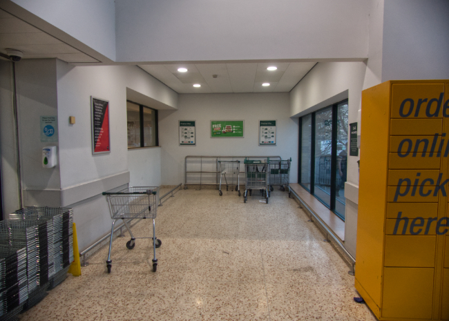 The screen on the automatic check out needs confirmation that I have bought my own bags. But only the shop assistant can do this. She is at the far end of the two banks of tills. She has to walk the distance again and again.