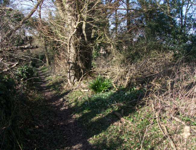 I walked past the church on the way to the footpath that would take me out of the village. All very English with the gravestones, yew trees and primroses and the sound of a hymn being sung loudly and with pleasing harmony.