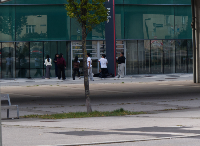 On the other side of the road near the entrance to the U-Bahn station a large group of teenagers were playing music and practicing dancing in formation. They were good dancers and expressed life, vitality, hope. They would stop and laugh and talk and then started dancing once again. Housing should be designed around such things.