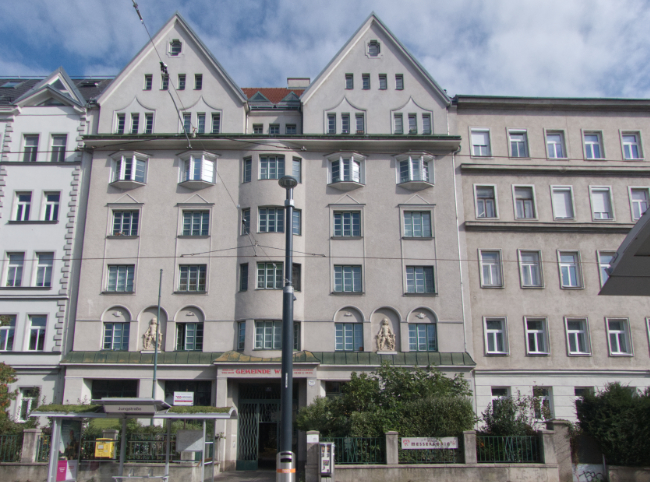 This apartment building was constructed between 1928 – 29 to a design by Otto Prutscher. There were originally 72 flats.