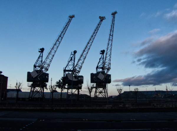 There is a scattering of ships in Leith docks. Rivits in the metal plates, rust runs down the painted sides; this was once a world of dockers, riviters, seafarers, warehouse workers.
