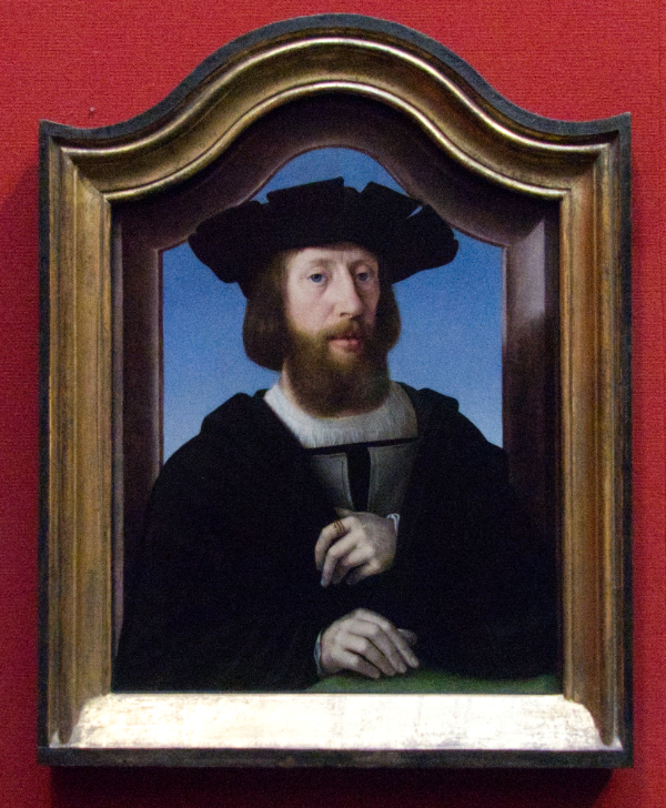 Near to Massys’ painting is another Portrait of a Man. It is from the Netherlandisch School but not directly attribute to any particular artist. Perhaps it is Jan Gossaert. The painting is dated from around 1525, only 15 years later than the Massys portrait.