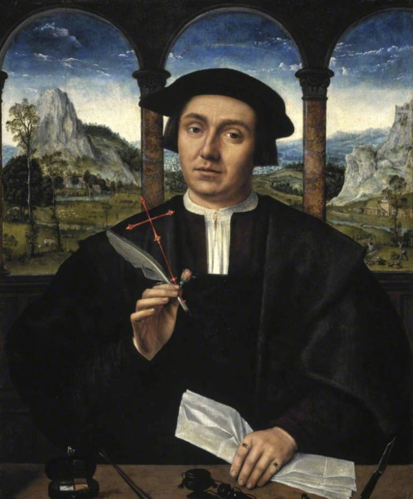 Nearby is The Portrait of an Unknown Man by Quentin Massys. His father was a black smith, his son Jan the painter of the enigmatic Flora and allegedly a member of the Family of Love in Antwerp in the 1550s.