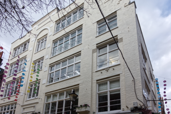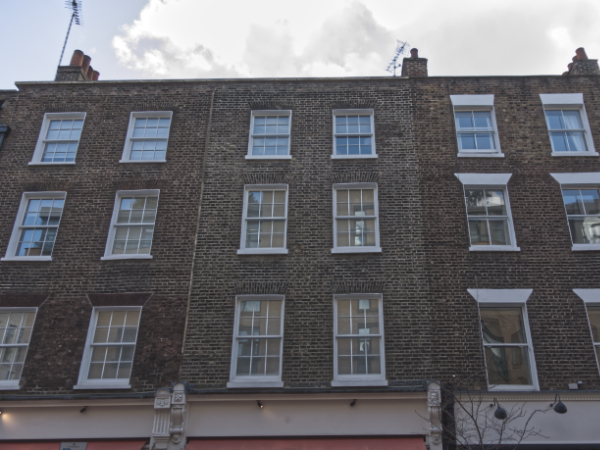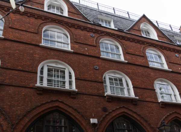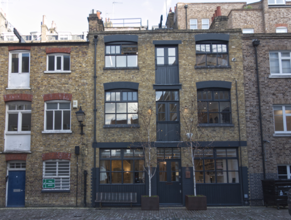 Number 4 Cross Keys Close was built in 1903 – 04 as stabling for John Davies, a dairy man. Boosey and Hawkes then turned the building into a workshop making bandsmen’s uniforms. After the Second World War it was used by Peter Cox, a specialist in stone cleaning and pioneer in the use of chemical damp proofing.