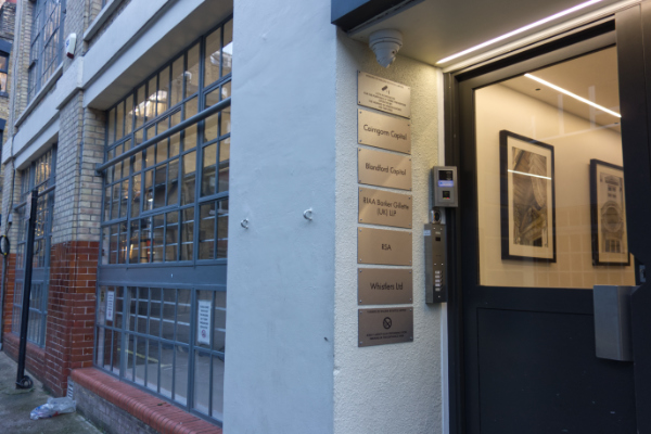 There are more plaques on one of the buildings. Cairngorm Capital with 12 employees and committed equity capital of approximately £400 m. Blandford Capital, which employs seven people. It is a private investment office so it does not need to disclose the assets under its management.