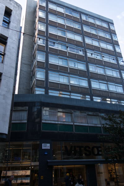 The building which is now Vitsoe is a curious addition and appears as a slab and block modernity. In December 2025 there was a reference on the plate glass to Deiter Rams one of the great designers of hi-fi systems and a product of the Frankfurt electronics and radio industries.